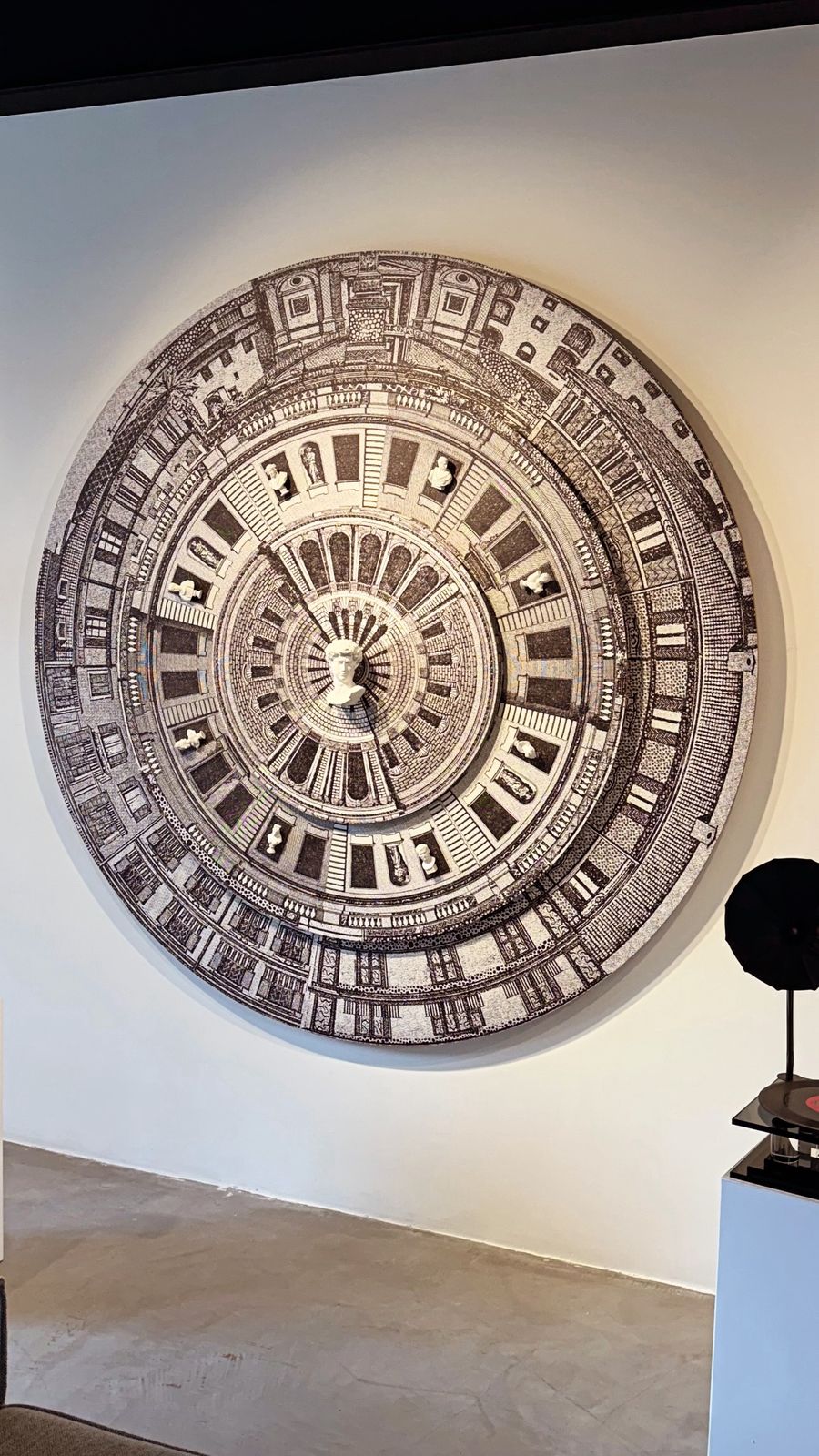 Tiempo se convierte en un ciclo sin fin en esta obra circular, donde figuras romanas giran en una danza perpetua.